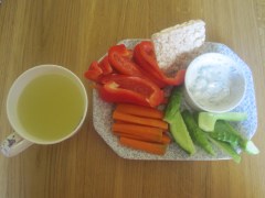 Brokastis: Citronūdens ar svaigiem dārzeņiem, rīsa galeti un kazas jogurta mērci =231kal