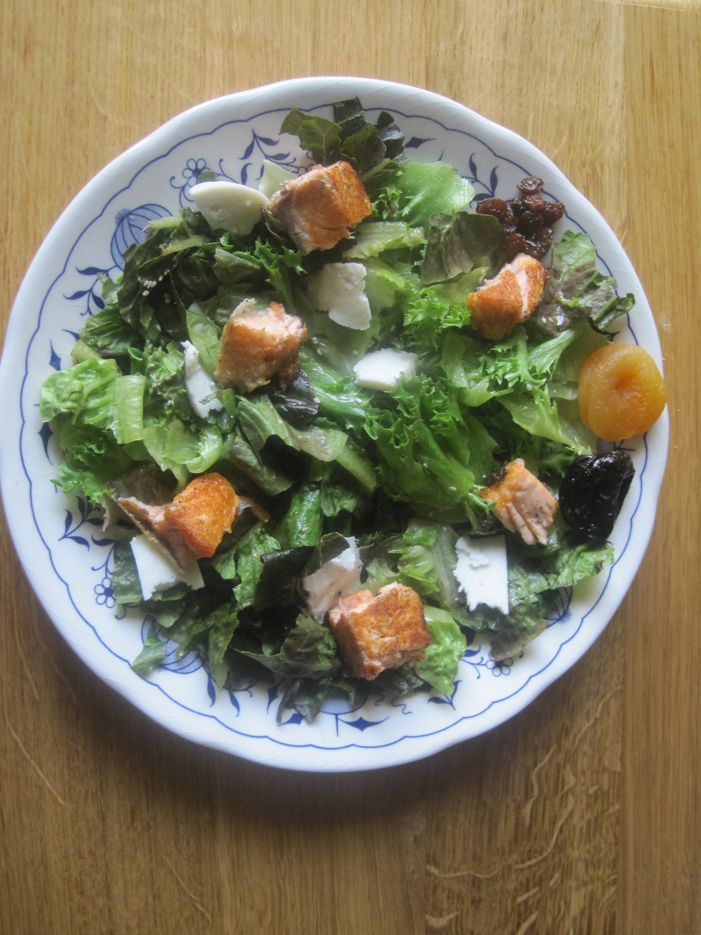 Vakariņas: Zaļie lapu salāti ar lasi un kazas sieru pārlieti ar vieglu mērcīti =300kal