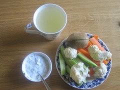 Brokastis: Citronūdens ar kivi, svaigiem dārzeņiem un kazas jogurta mērcīti =309kal