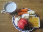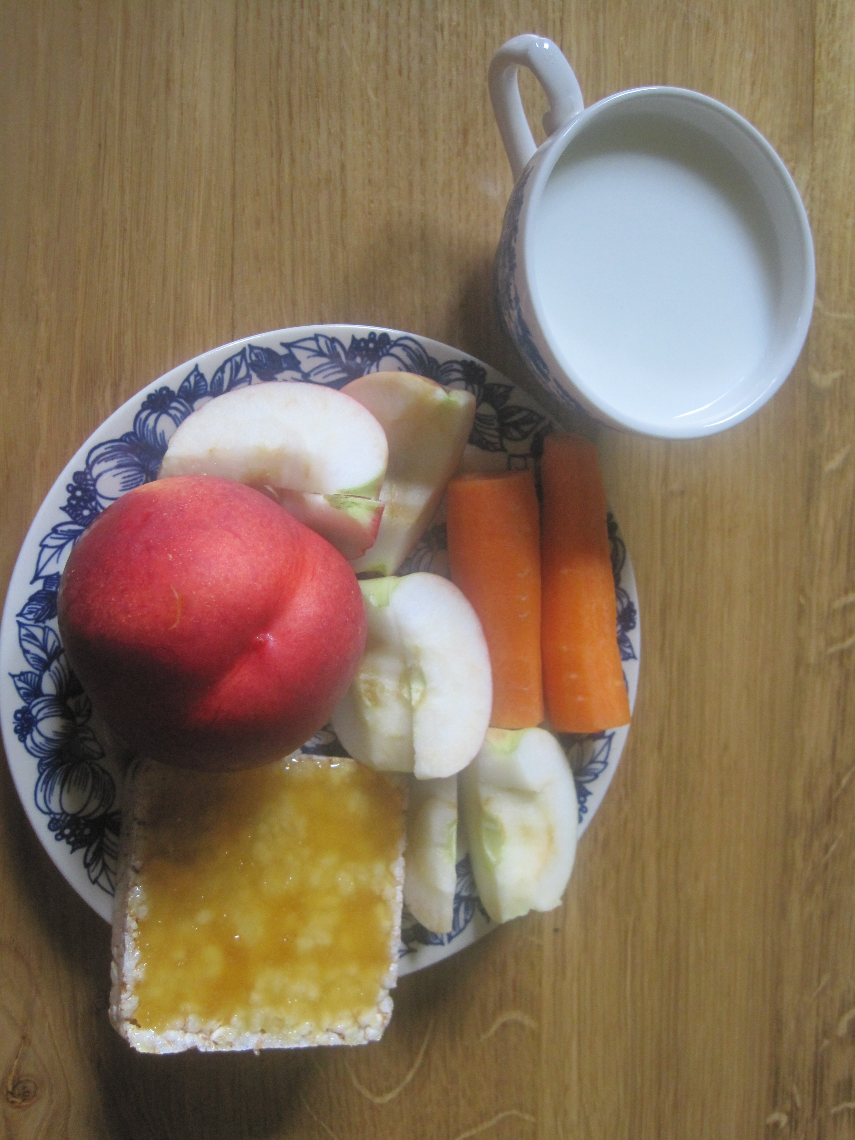 Brokastis: Citronūdens. Jogurts ar ābolu, nektarīnu, burkānu, galeti ar medu =321kal