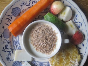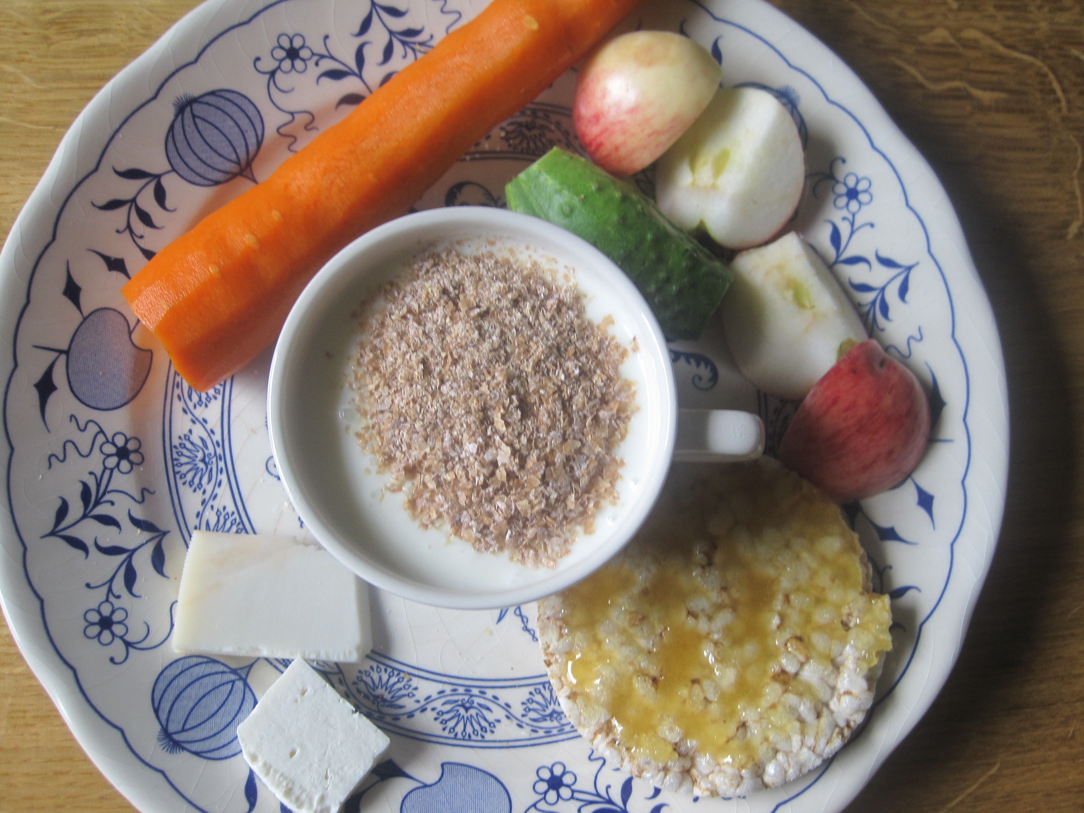 Brokastis:citronūdens, jogurts ar klijām, galete ar medu, burkāns, gurķis, ābols ar sieru =508kal